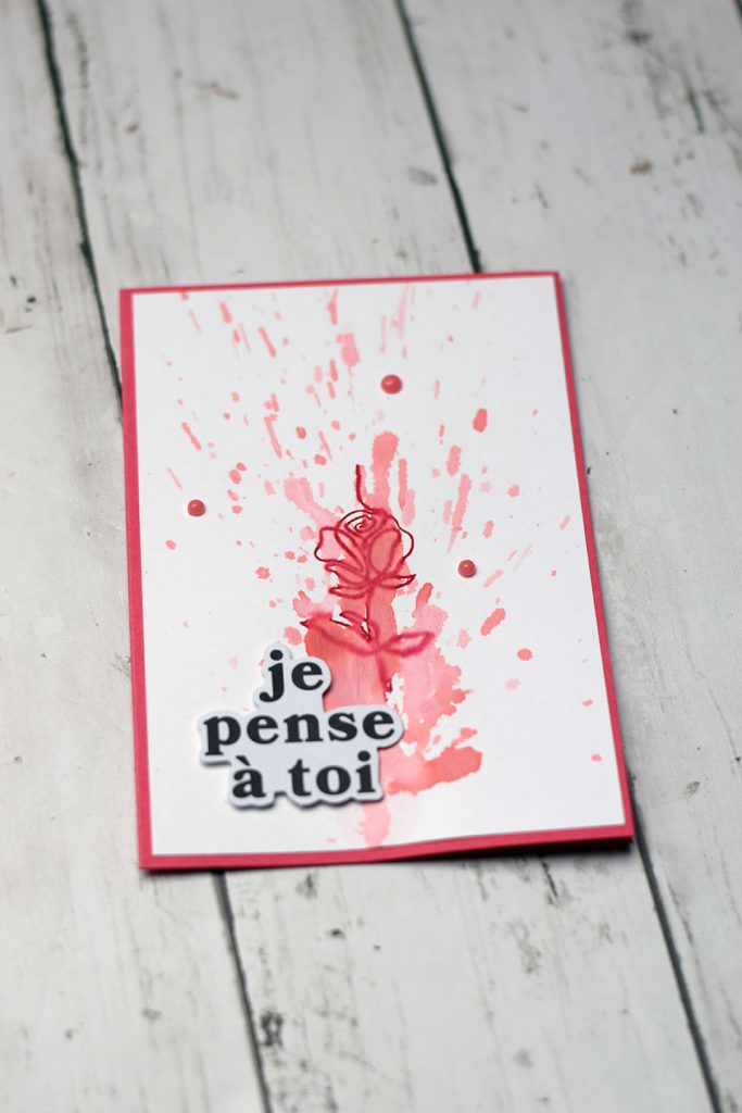 - Pshitt de l’eau, et laisse couler de l’encre pour obtenir ces fonds de cartes colorés