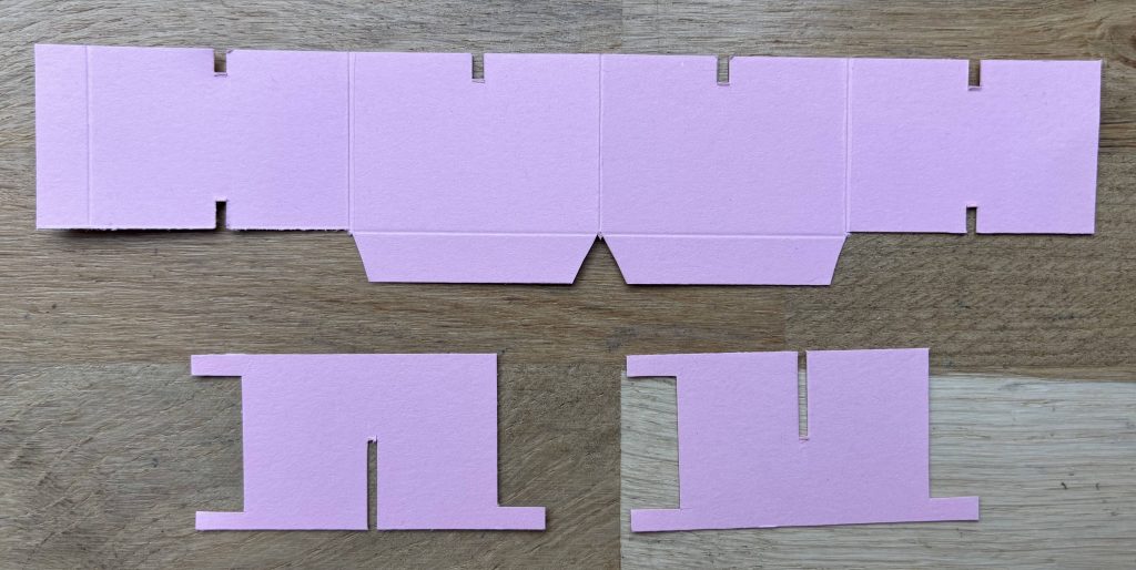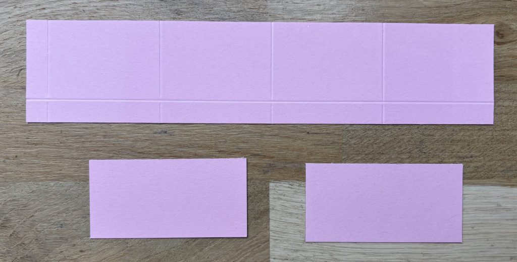 - Pour le mécanisme, découpe un morceau de 4.5×21 cm et 2 morceaux de 3.5×7 cm