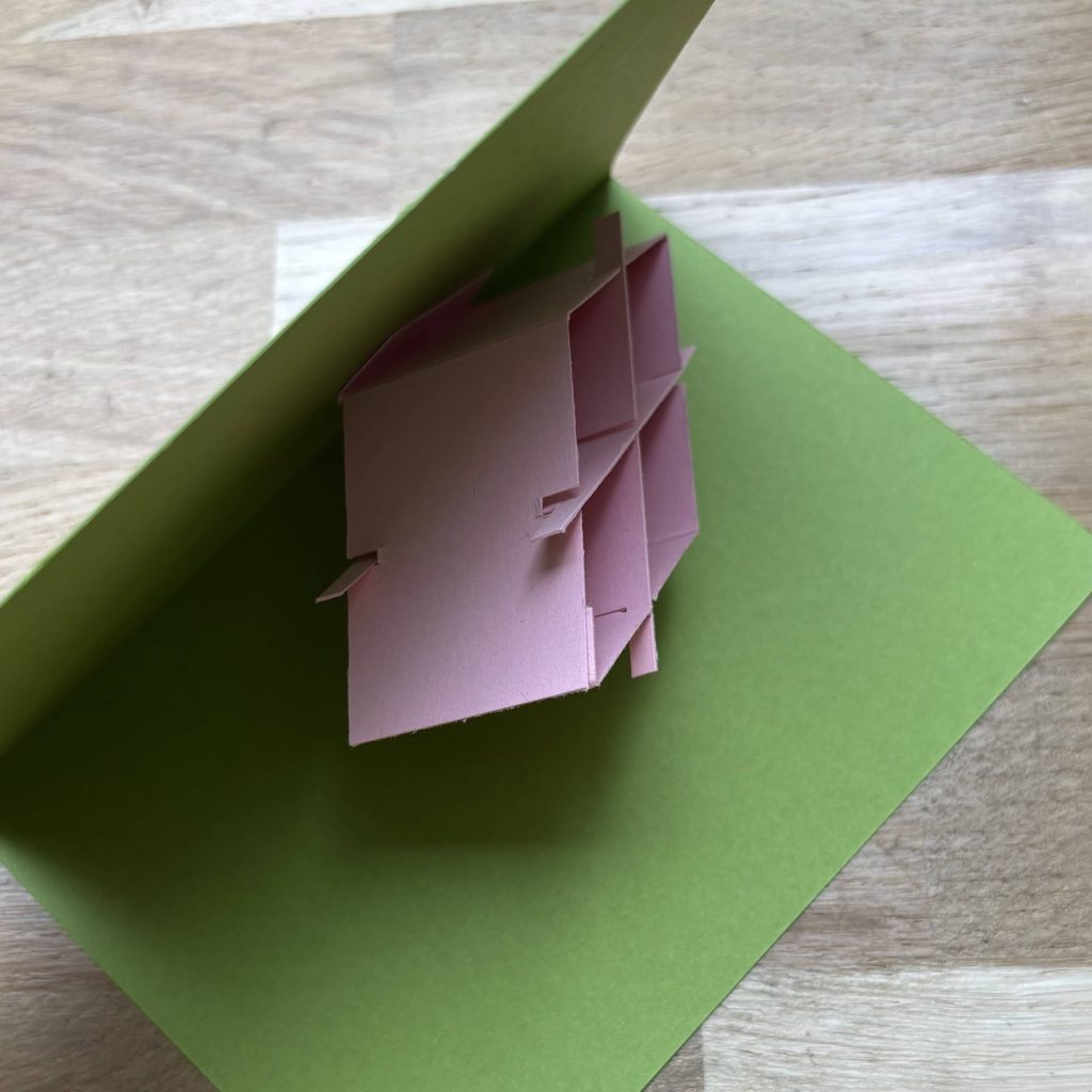 Imagine une grille composée de plusieurs rectangles. En pliant et assemblant ces rectangles de manière précise, tu crée des espaces dans lesquels tu peux insérer tes éléments 3D. Lorsque la carte est ouverte, ces éléments se déploient, créant ainsi une scène animée.