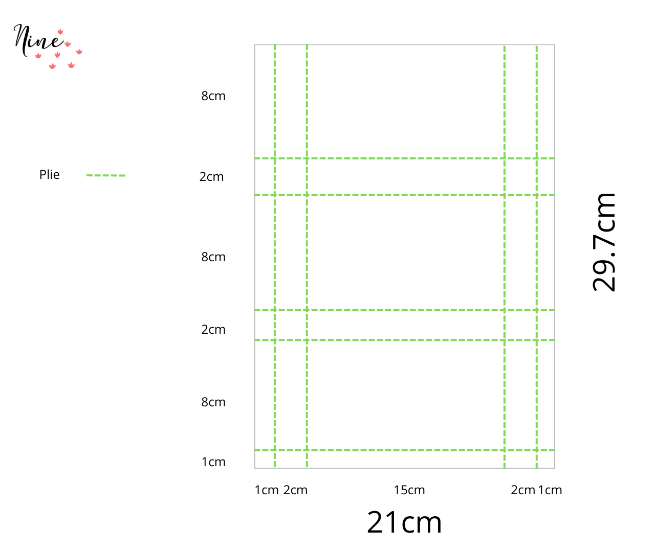 • Plie à 8 / 10 / 18 / 20 / 28 dans les 29.7cm et plie à 1 / 3 / 18 /20 dans les 21cm.