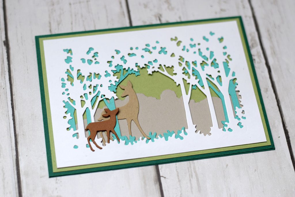 Transforme une simple carte en une scène miniature en relief. Empile les unes sur les autres les couches de papier préalablement découpées avec ta machine de découpe ou ajoute un peu d’interactivité en suivant l’un de mes tutoriels sur les cartes popup.