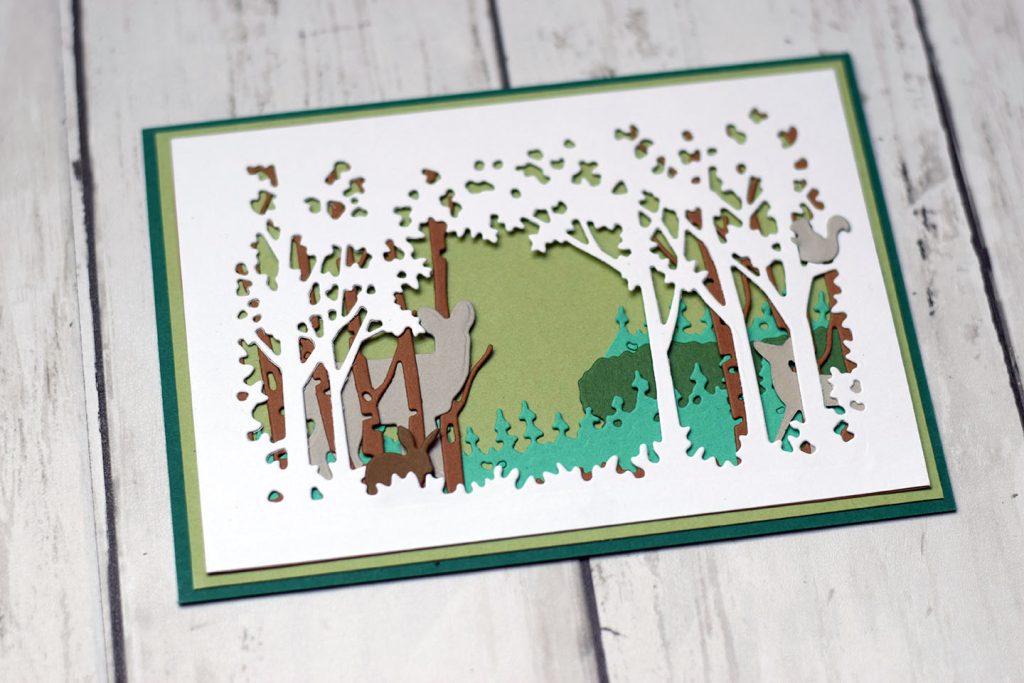 - Forêt enchantée : Utilise les poinçons « forêt délicate » et « dans les bosquets » pour créer un sous-bois luxuriant. Ajoute des champignons, des fleurs et des petites créatures en papier.