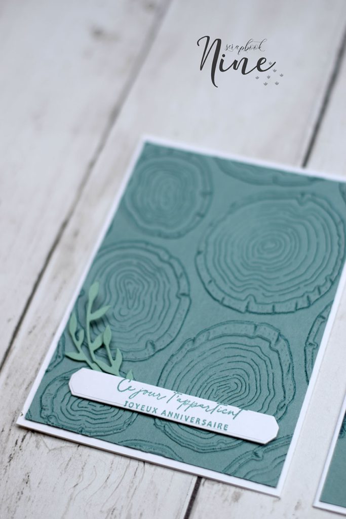 Imagine un projet où tu utilises un dossier de gaufrage « Bois d’arbre » avec un papier cartonné brun. Ajoute un léger dégradé d’encre sur les reliefs pour accentuer l’effet naturel. Termine avec un ruban et quelques ornements pour une carte qui respire la sophistication.